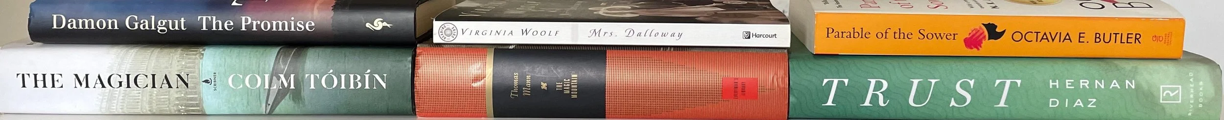 Next Tuesday, we’ll wrap up To the Lighthouse’s first book club series for writers and close readers with a discussion of Parable of the Sower by Octavia Butler. Our mix of books was wonderfully eclectic, but there were also some terrific resonances. We started with The Magician by Colm Toibin, the fictionalized account of Thomas Mann’s life, and then were inspired to read Mann’s masterpieceThe Magic Mountain. We read the Booker-prize-winner The Promise by Damon Galgut, with its roving close thirds, a stylistic descendent of another selection, Mrs. Dalloway, in which Virginia Woolf first helped establish “stream of consciousness” in fiction. Oddly, two of our six selections featured sanatoriums: The Magic Mountain and Trust by Hernan Diaz, one of my favorite books of recent years and a master class in perspective. And then there’s Parable, Butler’s brutal and visionary novel about a dystopic-future-cum-alternate-now and the community that regenerates care and hope in the darkest of times.